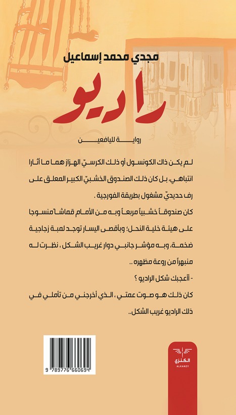 رواية لليافعين لم يكن ذاك الكونسول أو ذلك الكرسي الهزاز هما ما أثارا انتباهي، بل كان ذلك الصندوق الخشبي الكبير المعلق على رف حديدي مشغول بطريقة الفورجية . كان صندوقاً خشبياً مربعاً وبه من الأمام قماشاً منسوجا على هيئة خلية النحل وبأقصى اليسار توجد لمبة زجاجية ضخمة، وبه مؤشر جانبي دوار غريب الشكل ، نظرت له منبهراً من روعة مظهره … – أأعجبك شكل الراديو ؟ كان ذلك هو صوت عمتي ، الذي أخرجني من تأملي في ذلك الراديو غريب الشكل…